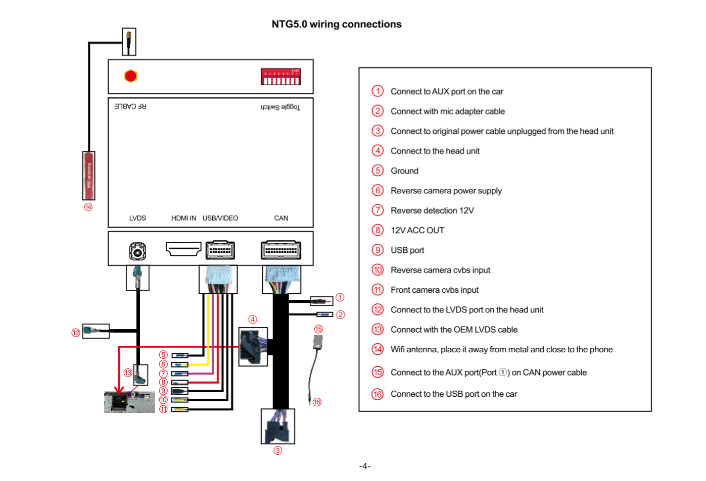 - It can also be connected via USB port (included in the kit) to keep your phone charged at the same time or play music and videos from a USB flash drive/hard drive.